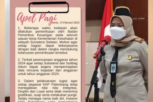 Selamat pagi sahabat Kespel, mengawali aktivitas pekerjaan 1 minggu kemudian, KKP Palembang melakukan apel rutin pada Senin 13 Februari 2023 yang dipimpin oleh Kepala KKP Palembang Ibu Emmilya Rosa, SKM, MKM dengan arahan sebagai berikut : Beberapa waktu kedepan akan dilakukan pemeriksaan oleh Badan Pemeriksa Keuangan pada seluruh satuan kerja…