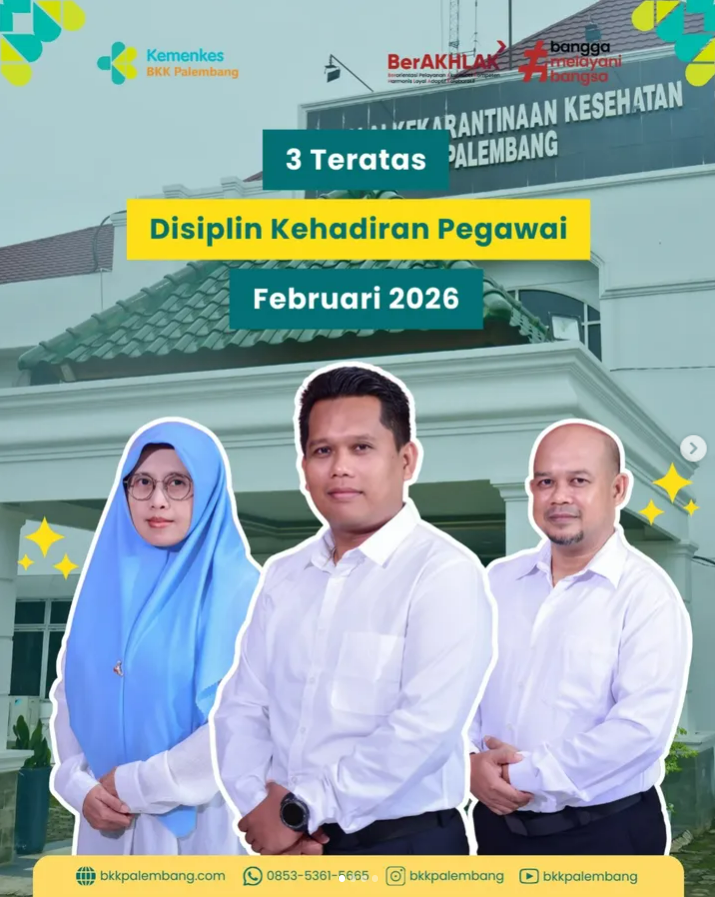 Dalam rangka memberikan apresiasi kepada pegawai yang berkomitmen terhadap kedisiplinan sebagai salah satu dari sembilan nilai integritas, BKK Kelas I Palembang setiap bulan menampilkan foto tiga pegawai terdisiplin.