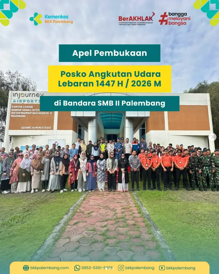 BKK Kelas I Palembang mengikuti Apel Pembukaan Posko Angkutan Udara Lebaran Tahun 1447 H / 2026 M yang dilaksanakan pada Jumat, 13 Maret 2026 di Bandara Sultan Mahmud Badaruddin II Palembang.