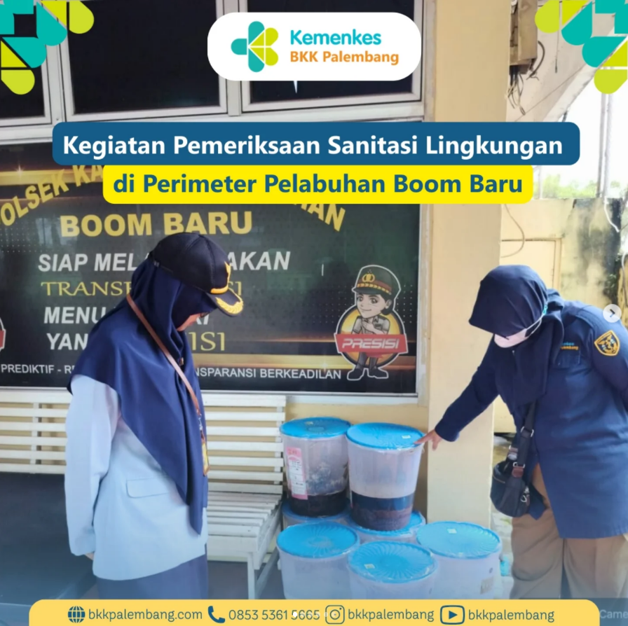 Balai Kekarantinaan Kesehatan Kelas I Palembang melalui Wilker Boom Baru secara rutin setiap bulan melaksanakan kegiatan pemeriksaan sanitasi lingkungan di area perimeter Pelabuhan Boom Baru.