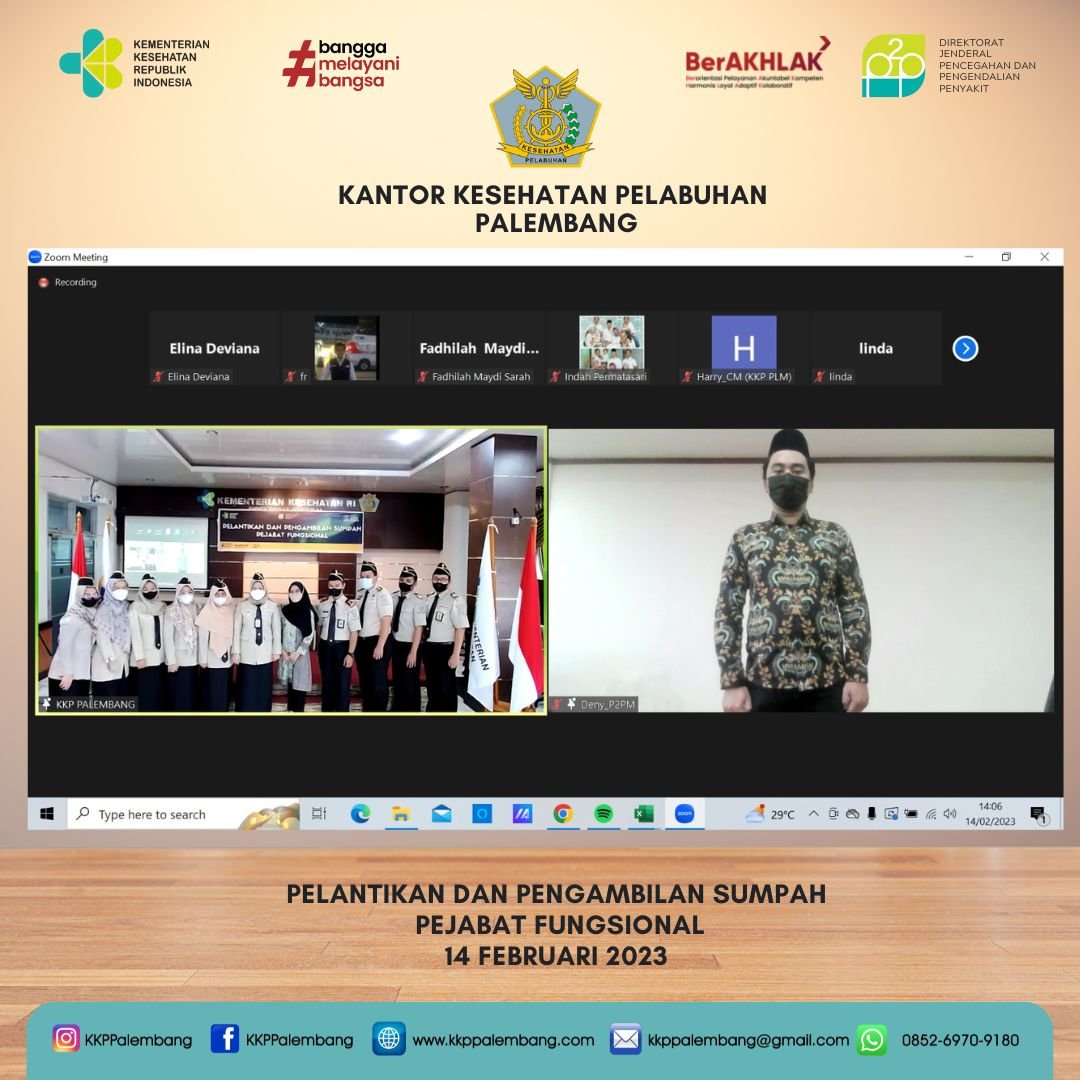 Dalam sambutannya Kepala Kantor Kesehatan Pelabuhan Kelas II Palembang berpesan agar pegawai yang baru saja dilantik dapat meningkatkan kinerja untuk mendukung kinerja Kantor Kesehatan Pelabuhan Kelas II Palembang dalam mencapai target kinerja organisasi. Selain itu beliau juga mengingatkan agar seluruh pegawai senantiasa menanamkan core values ASN Berakhlak (Berorientasi pelayanan, akuntabel, kompeten, harmonis, loyal, adaptif dan kolaboratif) ke dalam diri dan sanubari masing-masing.