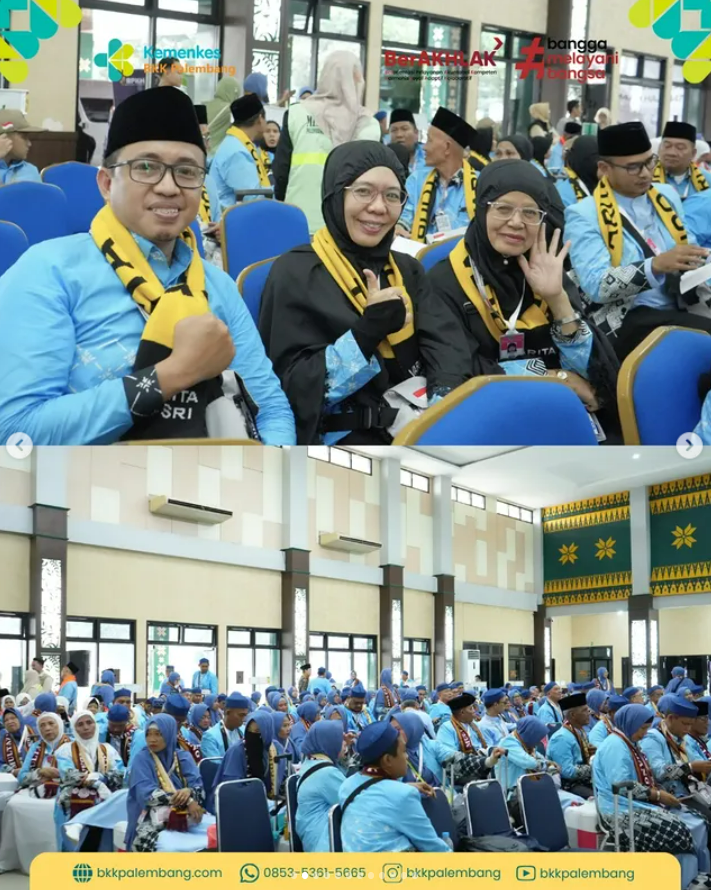 Pada Sabtu, 25 April 2026 pukul 11.00 WIB, sebanyak 444 Calon Jemaah Haji Kloter 004 asal Kota Palembang telah tiba di Asrama Haji Sumatera Selatan.