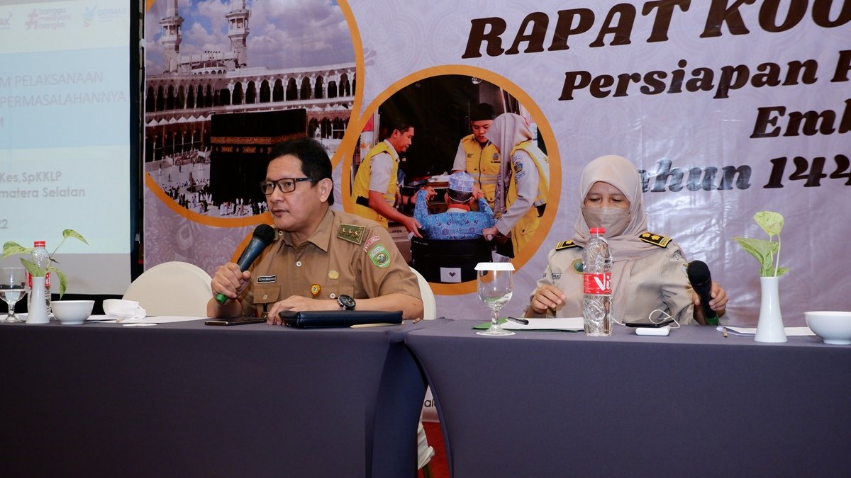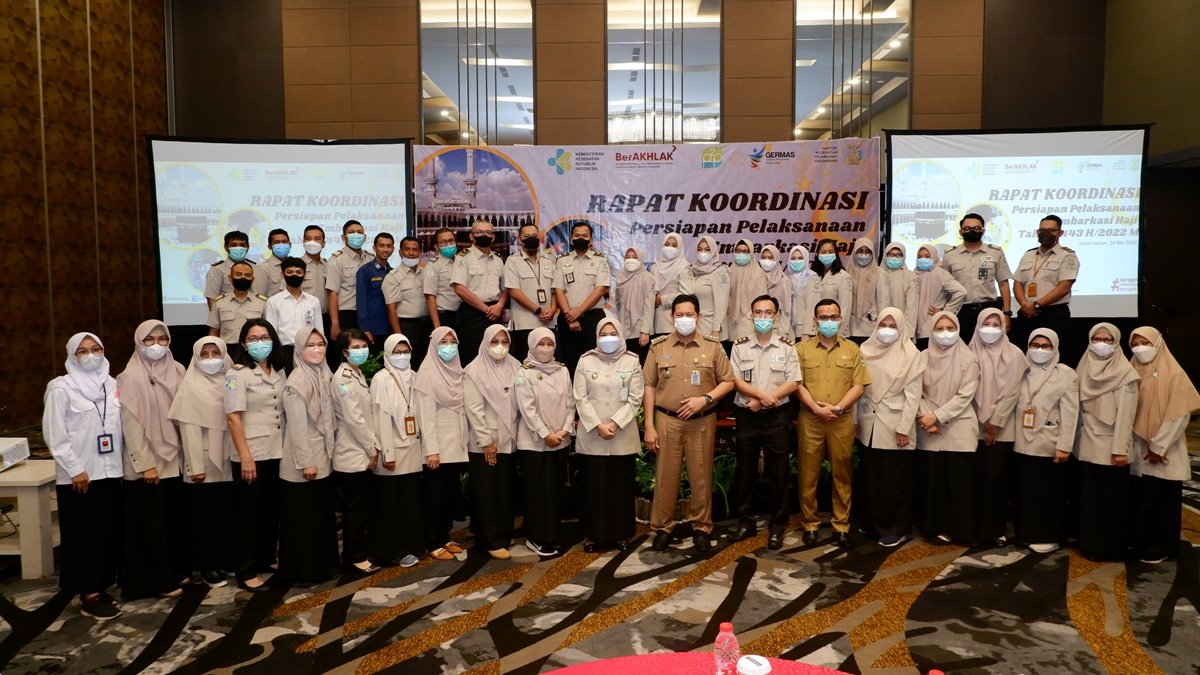 Kantor Kesehatan Pelabuhan Kelas II Palembang melaksanakan kegiatan Rapat Koordinasi Persiapan Pelaksanaan Embarkasi Haji Tahun 1443 H/2022 M di Hotel Harper pada hari Selasa tanggal 24 Mei 2022. Koordinasi antar panitia PPIH Bidang Kesehatan ini dimaksudkan agar pelayanan kesehatan dapat diberikan secara optimal bagi Calon Jamaah Haji Provinsi Sumatera Selatan.