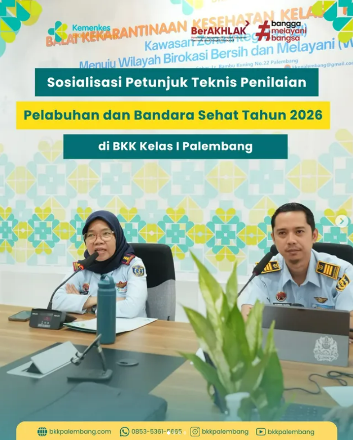 Kegiatan ini berlangsung secara hybrid, dilaksanakan di Ruang Rapat Kantor Induk BKK Kelas I Palembang serta diikuti secara daring oleh para stakeholder dari pelabuhan, bandara, rumah sakit, kepolisian, serta pihak terkait lainnya di Provinsi Sumatera Selatan.