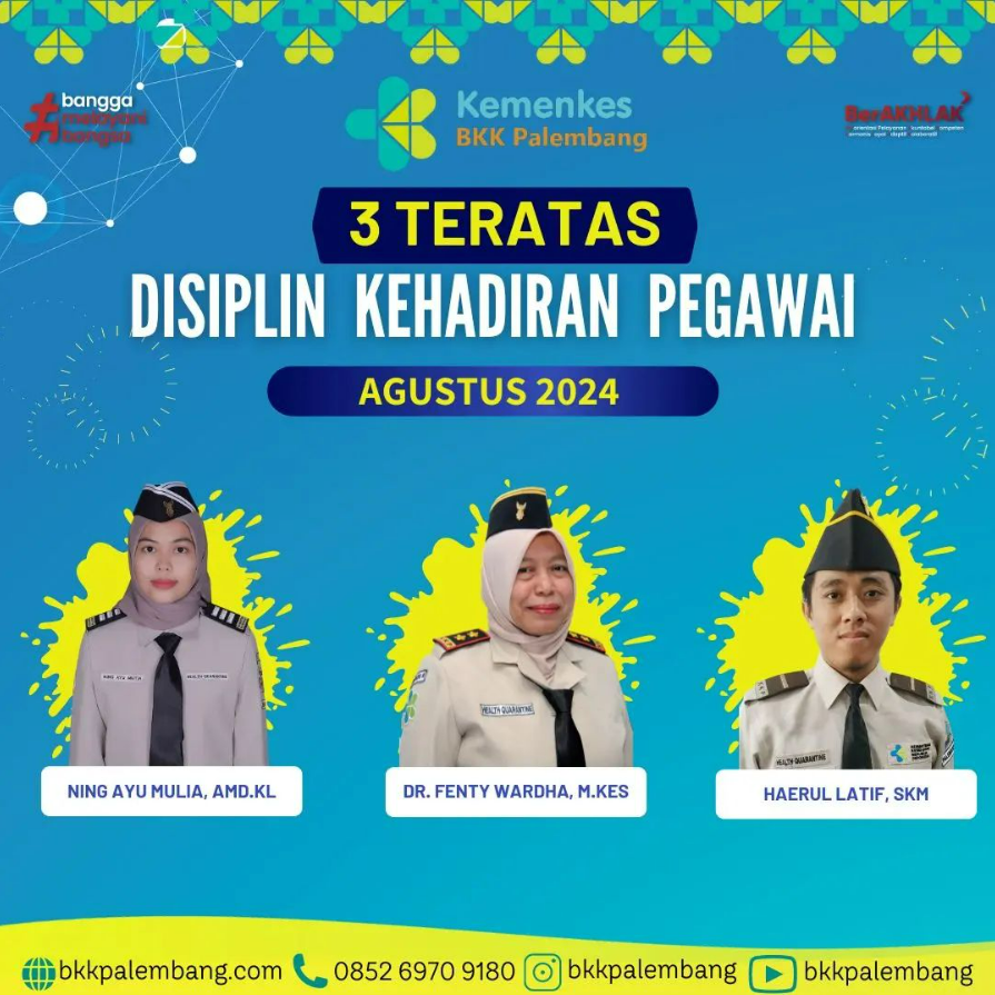 Sebagai bentuk apresiasi kepada pegawai yang telah menunjukkan kinerja kedisiplinan yang baik, Balai Kekarantinaan Kesehatan Kelas I Palembang setiap bulan akan menampilkan 3 (tiga) foto pegawai terbaik dan foto tersebut dipasang di ruangan kantor serta diposting melalui media sosial.