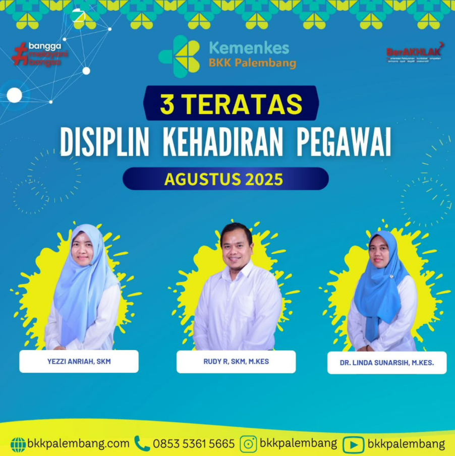 Dalam rangka memberikan apresiasi kepada pegawai yang telah berkomitmen terhadap kedisiplinan sebagai salah satu dari sembilan nilai integritas. Balai Kekarantinaan Kesehatan Kelas I Palembang setiap bulan menampilkan foto 3 (tiga) pegawai terdisiplin.