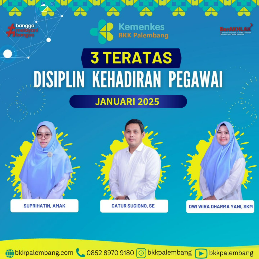Sebagai bentuk apresiasi kepada pegawai yang telah menunjukkan kinerja kedisiplinan yang baik, Balai Kekarantinaan Kesehatan Kelas I Palembang setiap bulan akan menampilkan 3 (tiga) foto pegawai terbaik dan foto tersebut dipasang di ruangan kantor serta diposting melalui media sosial.