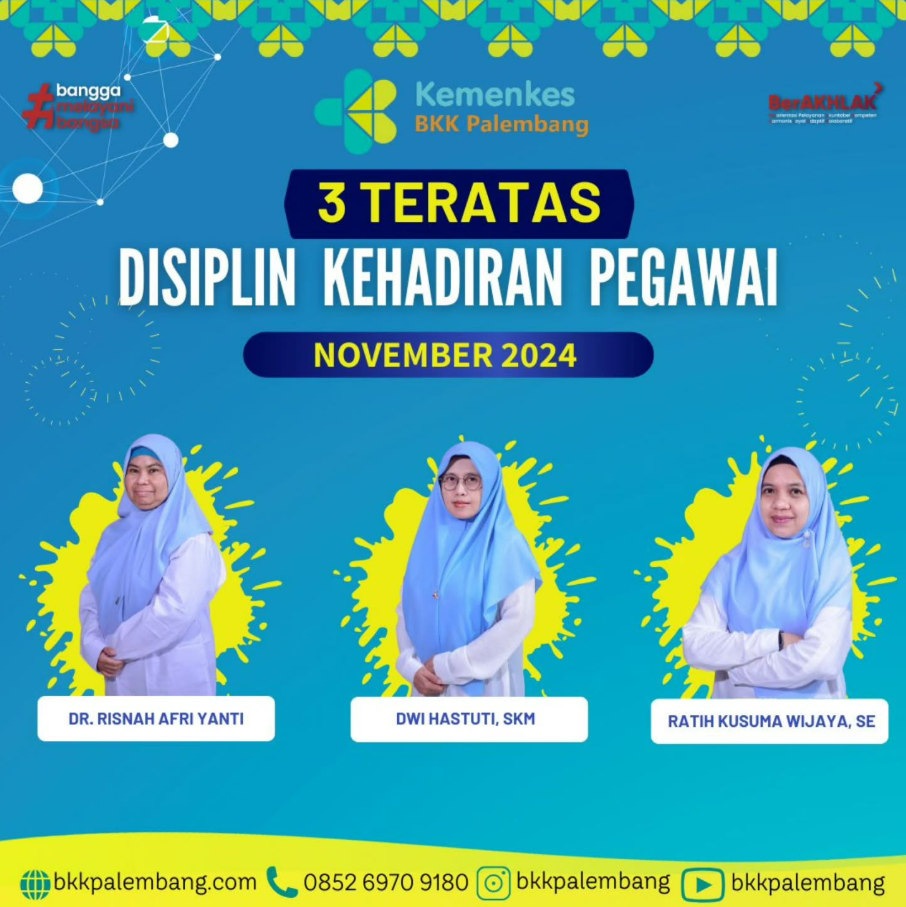Pada bulan ini berdasarkan data kehadiran bulan November 2024 diberikan apresiasi kepada 3 (tiga) pegawai terbaik sebagai berikut :