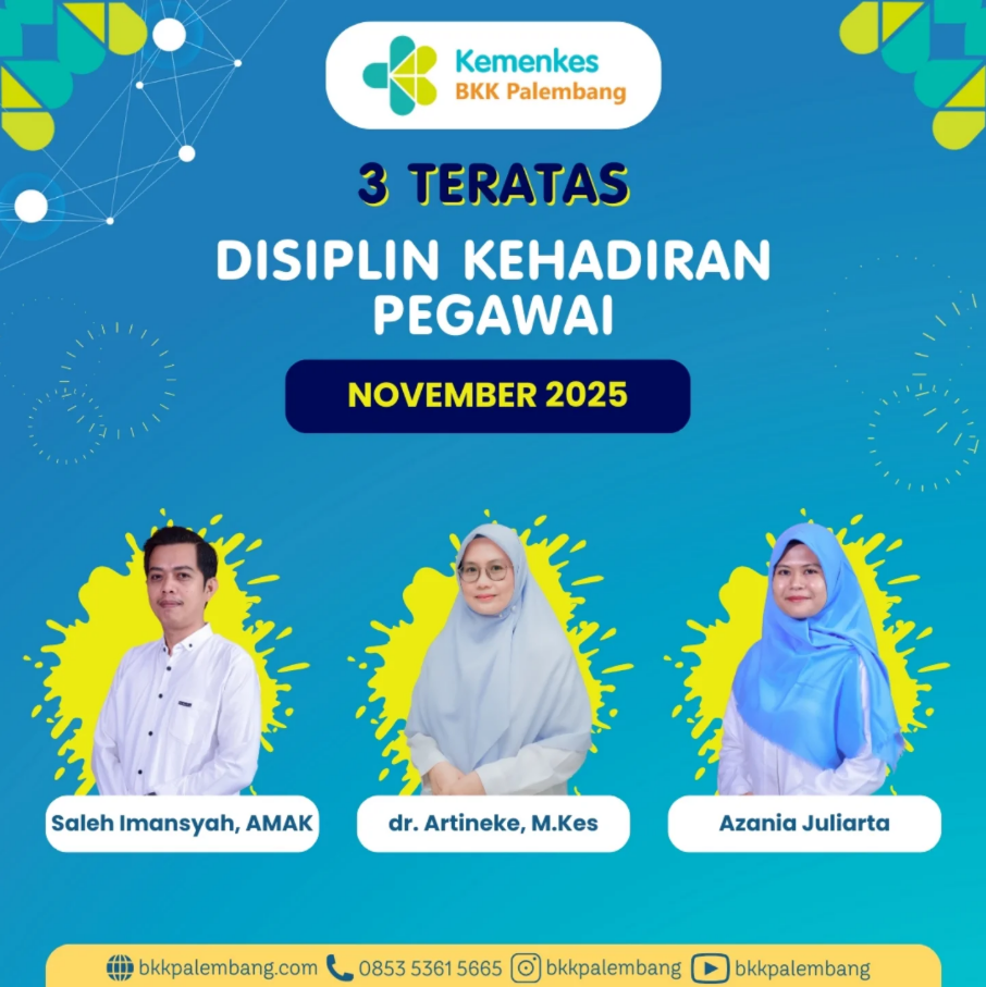 Pada bulan ini, berdasarkan data kehadiran bulan November 2025, diberikan apresiasi kepada tiga pegawai terdisiplin sebagai berikut: