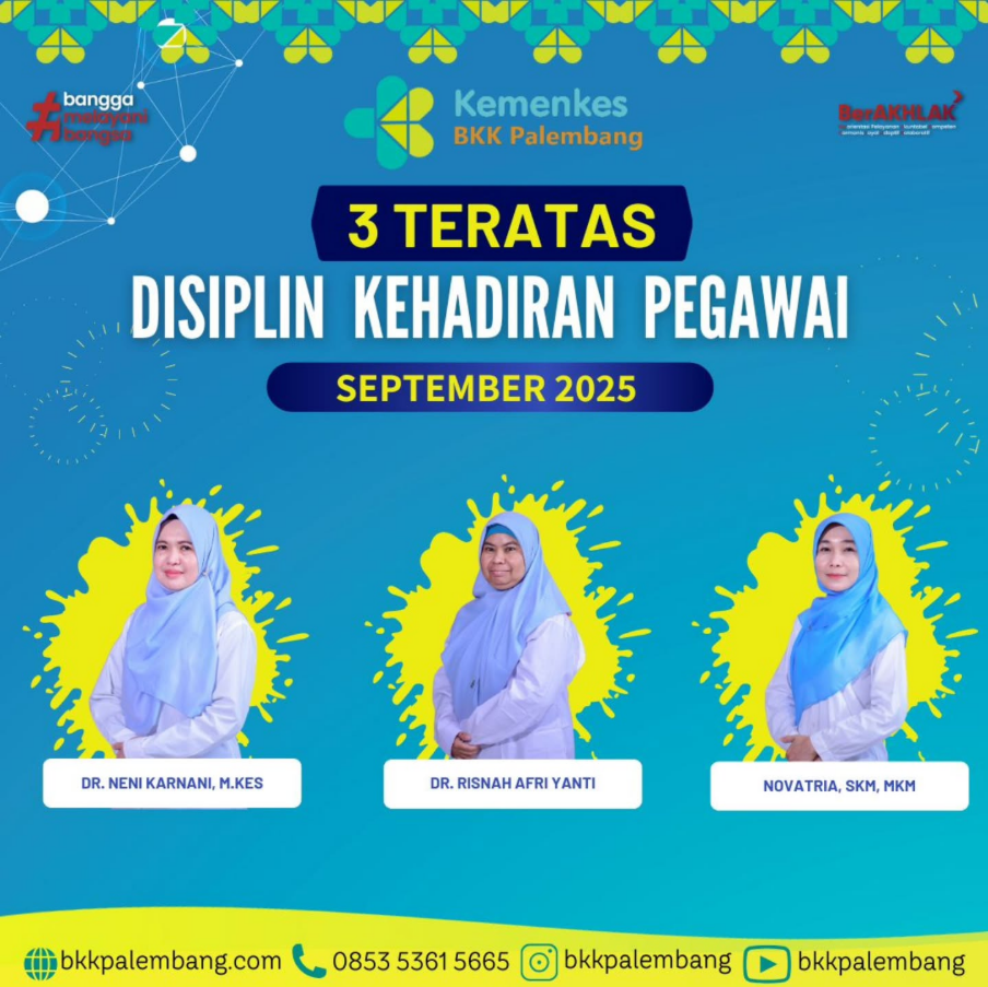 Dalam rangka memberikan apresiasi kepada pegawai yang telah berkomitmen terhadap kedisiplinan sebagai salah satu dari sembilan nilai integritas. Balai Kekarantinaan Kesehatan Kelas I Palembang setiap bulan menampilkan foto 3 (tiga) pegawai terdisiplin.