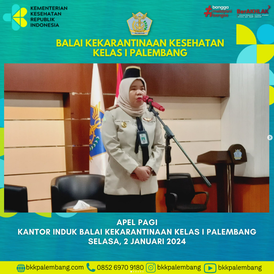 Tahun 2024 di Balai Kekarantinaan Kesehatan Kelas I Palembang diawali dengan Apel Pagi. Dipimpin langsung oleh Ibu Kepala BKK Kelas I Palembang, Emmilya Rosa, SKM, MKM., diikuti oleh seluruh pegawai baik secara luring maupun daring.