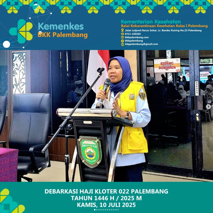 Dalam sambutan terakhirnya Kepala BKK Kelas I Palembang Ibu Emmilya Rosa, SKM, MKM terus menghimbau kewaspadaan terhadap potensi penyebaran penyakit menular dari luar negeri. Kepadatan dan interaksi lintas negara yang terjadi selama pelaksanaan ibadah haji menjadi salah satu faktor risiko meningkatnya penyebaran penyakit menular.