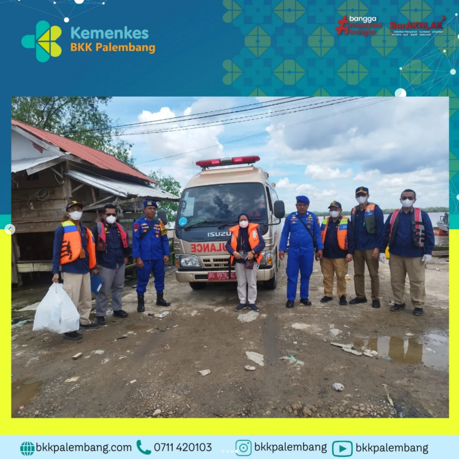 Tim Gerak Cepat (TGC) Balai Karkes Kelas I Palembang bersama lintas sektor terkait melakukan evakuasi jenazah crew kapal MV. Falcon Trident.