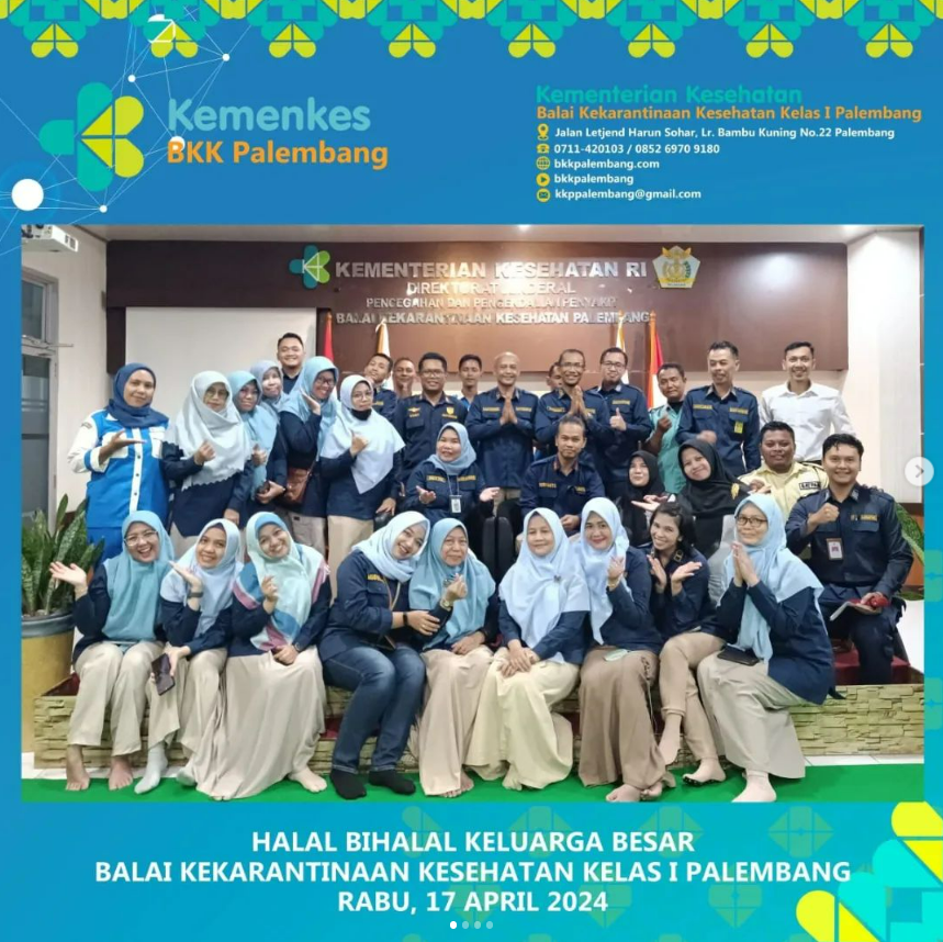 Masih dalam suasana Idil Fitri, Kepala Balai dan seluruh pegawai Balai Kekarantinaan Kesehatan Kelas I Palembang mengadakan acara Halal Bihalal di Aula BKK Kelas I Palembang.