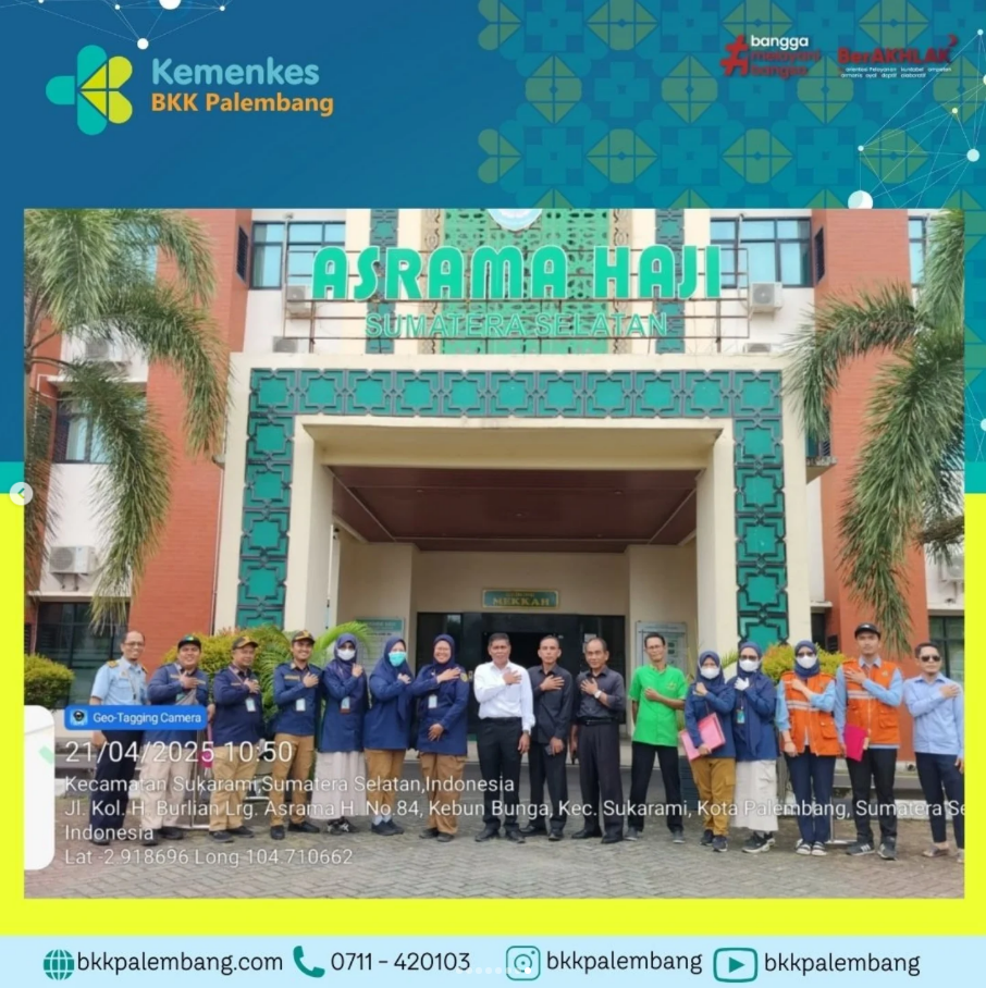 Kegiatan dilaksanakan oleh Tim Pengawasan Risiko Kesehatan Lingkungan BKK Kelas I Palembang beserta lintas sektor terkait yaitu Kementerian Agama Prov Sumsel, Dinas Kesehatan Prov Sumsel, Balai Laboratorium Kesehatan Masyarakat Kelas I Palembang dan tentunya Badan Pengelola Asrama Haji Prov Sumsel.
