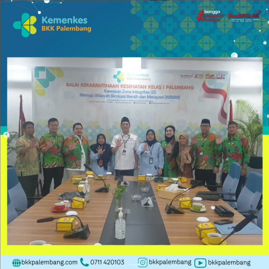 Kamis, 24 April 2025, Balai Kekarantinaan Kesehatan Kelas I Palembang kedatangan pengurus Asosiasi muslim penyelenggara Haji dan Umrah Republik Indonesia (Amphuri) Sumbagsel dalam rangka audiensi khusus membahas Kebijakan Kesehatan Haji dan Umrah tahun 2025.