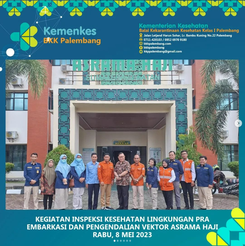 Persiapan embarkasi haji telah dimulai yaitu meliputi kegiatan inspeksi kesehatan lingkungan dan pengendalian vektor di asrama haji Provinsi Sumatera Selatan.