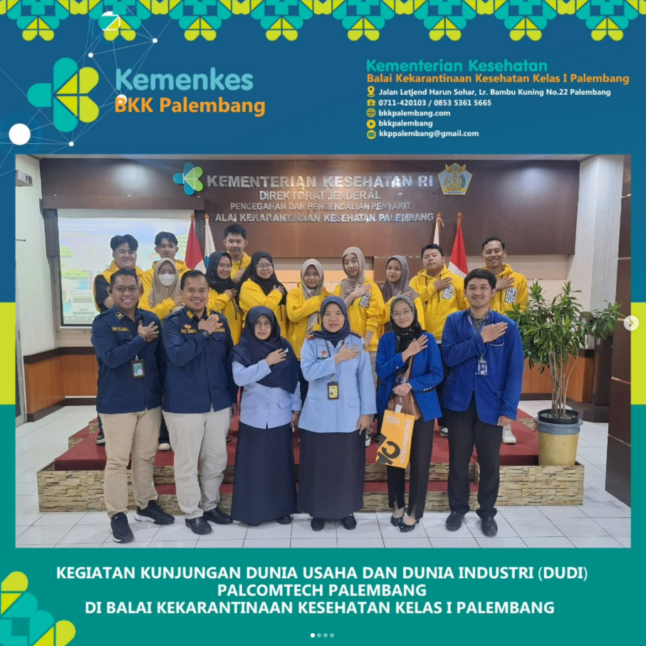 Pada hari Rabu, 4 Juni 2025, Balai Kekarantinaan Kesehatan (BKK) Kelas I Palembang menerima kunjungan dari Palcomtech Palembang dalam rangka kegiatan Kunjungan Dunia Usaha dan Dunia Industri (DUDI).
