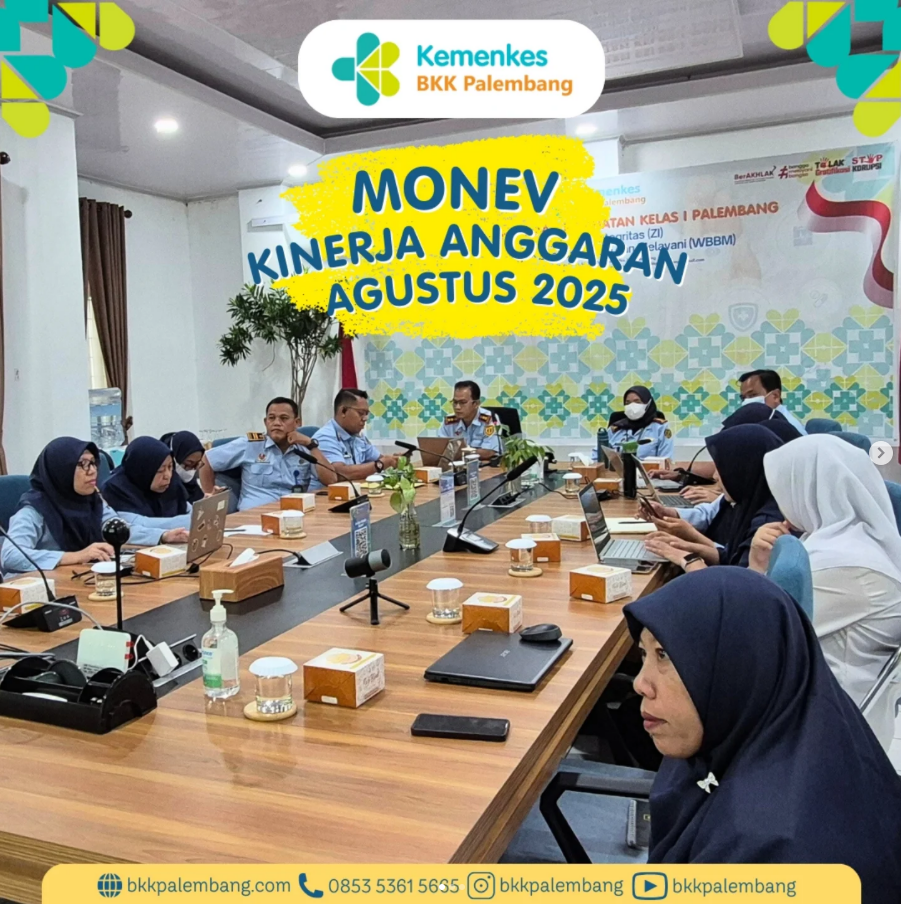 Pada hari Selesa, 9 September 2025, telah dilaksanakan Monitoring dan Evaluasi (Monev) Capaian Kinerja dan Realisasi Anggaran sampai dengan Agustus 2025, yang dipimpin oleh Kepala BKK Kelas I Palembang, Ibu Emmilya Rosa, SKM, MKM.