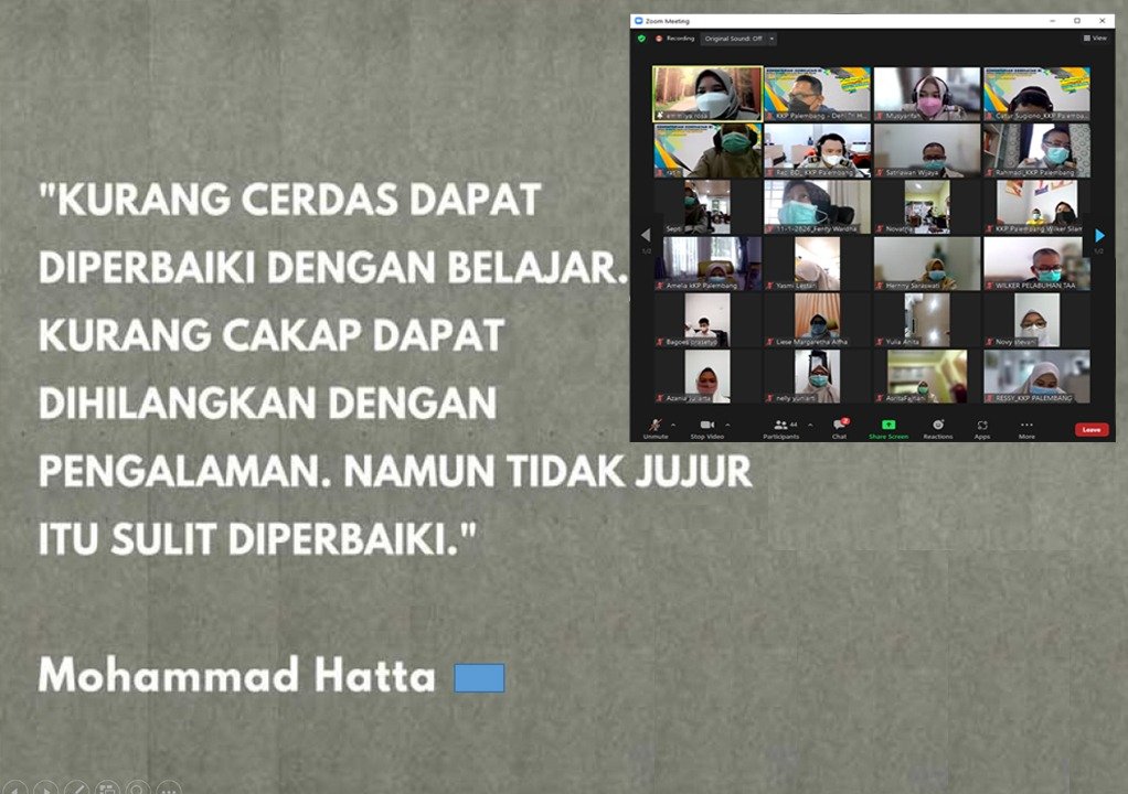 Budaya Anti Korupsi harus melekat pada jiwa semua pegawai KKP Kelas II Palembang. Dengan nilai Jujur, Peduli, Mandiri, Tanggung Jawab, Kerja Keras, Sederhana, Berani dan Adil, diharapkan mampu meningkatkan kepercayaan masyarakat kepada KKP kelas II Palembang.
