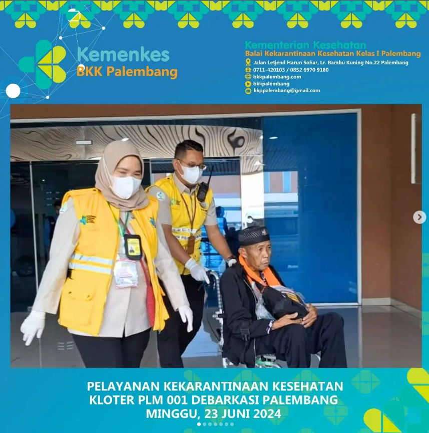 Balai Kekarantinaan Kesehatan Kelas I Palembang yang tergabung dalam Panitia Penyelenggaraan Ibadah Haji Bidang Kesehatan memastikan semua jamaah haji sehat dan bisa melanjutkan perjalanan kembali ke daerah atau rumah masing-masing.