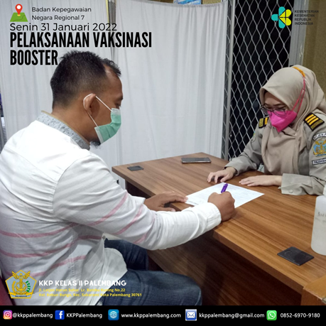 Kantor Kesehatan Pelabuhan Kelas II Palembang bekerja sama dengan Badan Kepegawaian Negara Kantor Regional VII Palembang melaksanakan pelayanan mobile vaksinasi covid-19 khusus booster pada hari Senin, tanggal 31 Januari 2022 di Kantor BKN Regional VII Palembang.