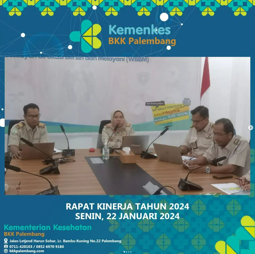 Pada hari Senin, 22 Januari 2024 telah dilakukan Rapat Kinerja Tahun 2024 yang dihadiri oleh Kepala Subbag Adum, Koordinator Substansi dan Wilker beserta para pegawai, baik secara luring maupun daring.