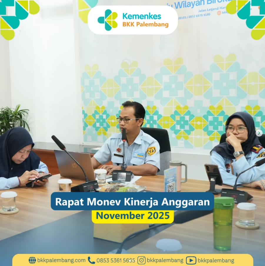 Jumat, 5 Desember 2025, telah dilaksanakan Rapat Monitoring dan Evaluasi (Monev) Capaian Kinerja dan Realisasi Anggaran sampai dengan November 2025. Kegiatan ini dipimpin langsung oleh Kepala BKK Kelas I Palembang, Ibu Emmilya Rosa, SKM, MKM.
