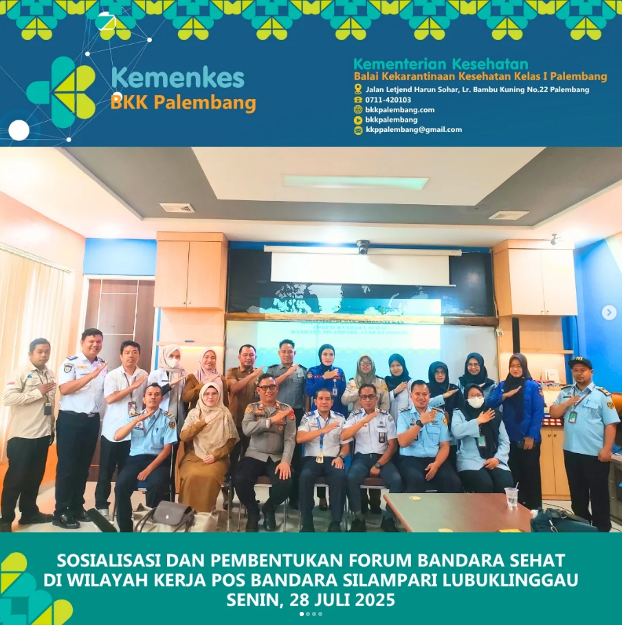 Pada hari Senin, 28 Juli 2025, telah dilaksanakan Sosialisasi dan Pembentukan Forum Bandara Sehat di wilayah kerja Pos Bandara Silampari, Lubuklinggau.