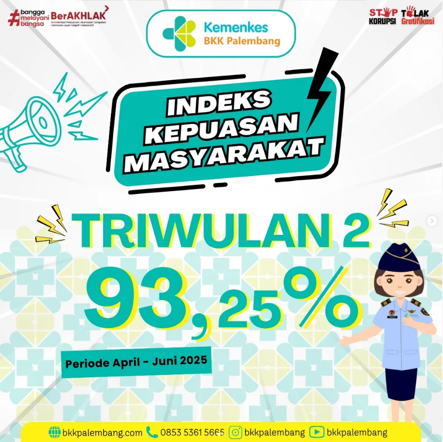 Dalam rangka mewujudkan pelayanan publik yang prima, transparan, dan berorientasi pada kepuasan masyarakat, Balai Kesehatan Kerja (BKK) Kelas I Palembang secara berkala melaksanakan survei untuk mengukur persepsi dan tingkat kepuasan pengguna layanan.
